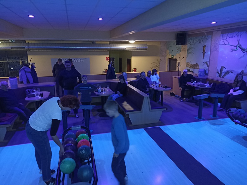 Danach ging es weiter zu den 4 angemieteten Bowlingbahnen. In getrennten Gruppen traten die Kinder und Erwachsenen sportlich